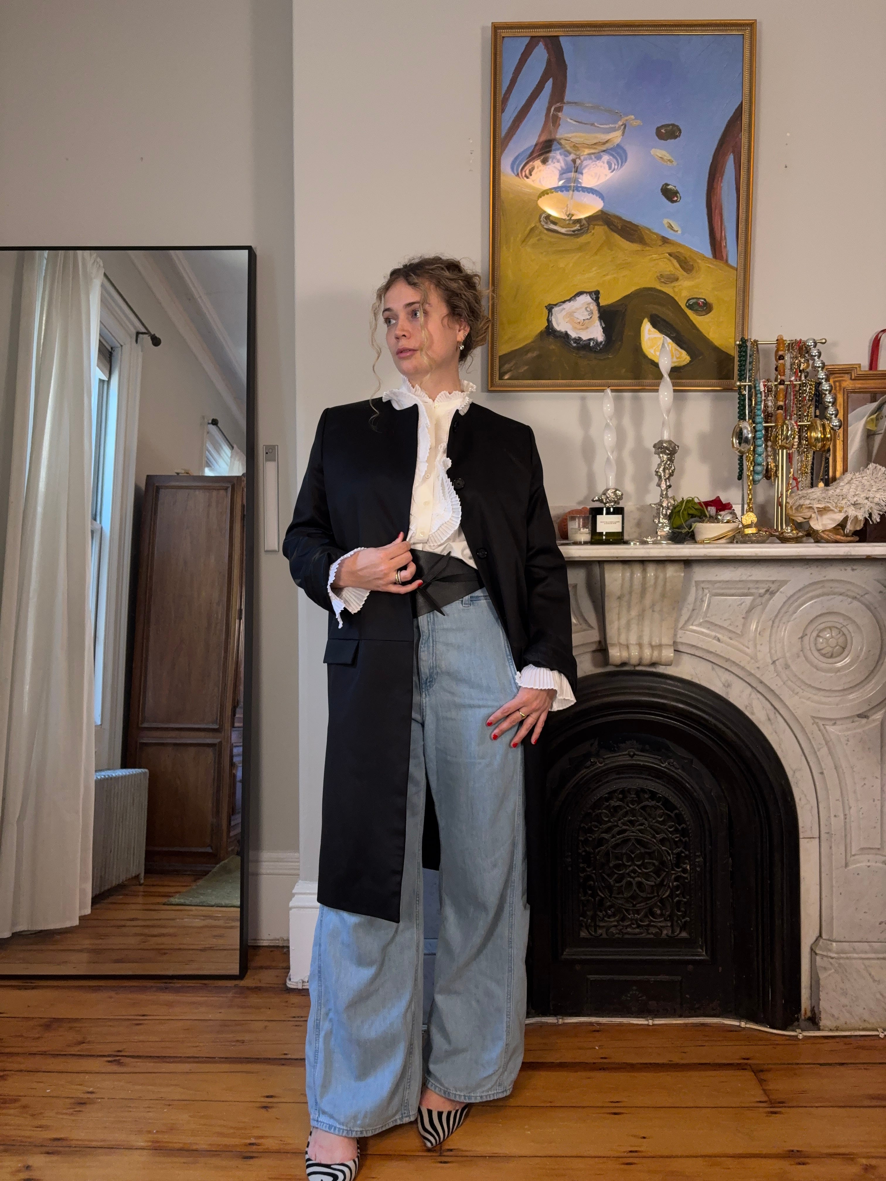While I’m still hunting for the perfect one (fingers crossed this cummerbund sash from Atelier Jea comes back in stock), I’ve fashioned waist belts and scarves to mimic the look in the meantime.