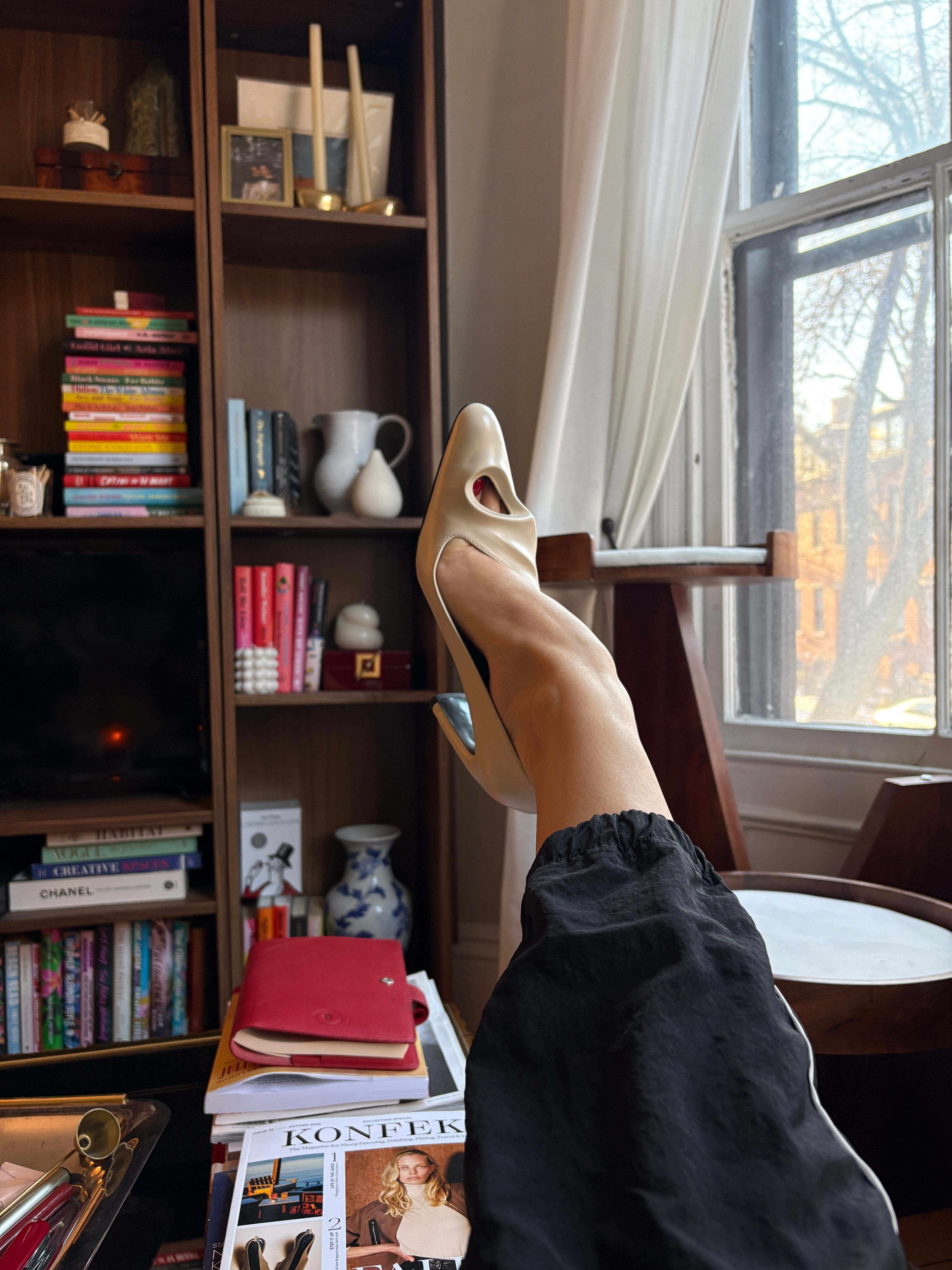 They’re surprisingly comfortable for their height (especially since pumps usually gift me heel blisters), and I wore them out all night without a single issue. Conveniently, this happened to be the same night as the aforementioned martinis, and I’m pleased to report they proved functional and resilient, cleanig up effortlessly with a damp cloth after a particularly dirty introduction to a dive bar floor.